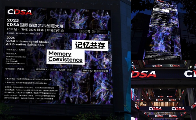 2025年10月9日,“CDSA国际媒体艺术创意大展(北京站)”在THE BOX朝外年轻力中心顺利闭幕。该展览由王晨皓、孔令颜、刘梦共同担任策展人,卢英英担任学术主持,、赵晨阳、张宝藩负责宣传工作。展期为2025年10月2日至10月9日,共持续八天。