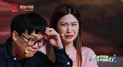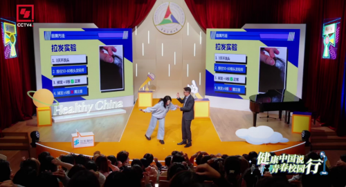 “零距离喜剧”一直是《健康中国说·青春校园行》节目中的特色环节。中国传媒大学站的节目中,喜剧人常诚与王洁以大学生的真实生活为蓝本,演绎 “熬夜赶论文后刷视频自测脱发”“轻信生姜治脱偏方” 等翻车场景,将 “脱发焦虑”“科普误区” 融入生活化的爆笑喜剧剧情中。